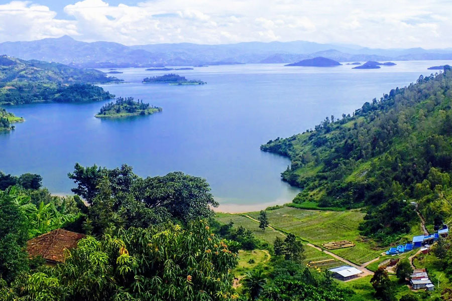 Lake Kivu offers spectacular vistas of islands and inlets along its shoreline, with beautiful beach resorts.